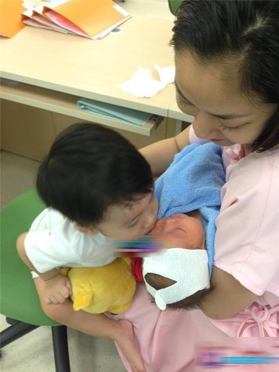 Con trai của Thu Phương cũng chạy vào thăm em ngay khi mẹ mới đẻ.