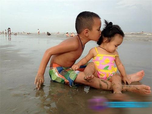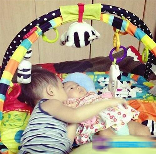 Bé trai rất ra dáng làm anh, thường xuyên chơi đùa cùng em gái.