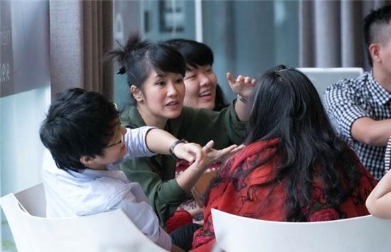 Ngồi lọt thỏm giữa các học trò cưng, nữ ca sĩ lắng nghe thắc mắc