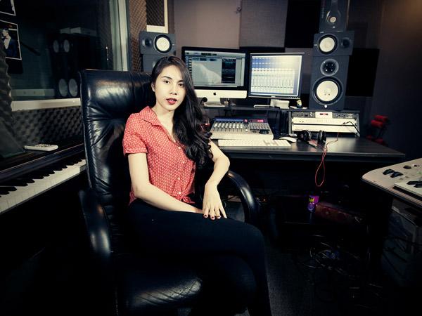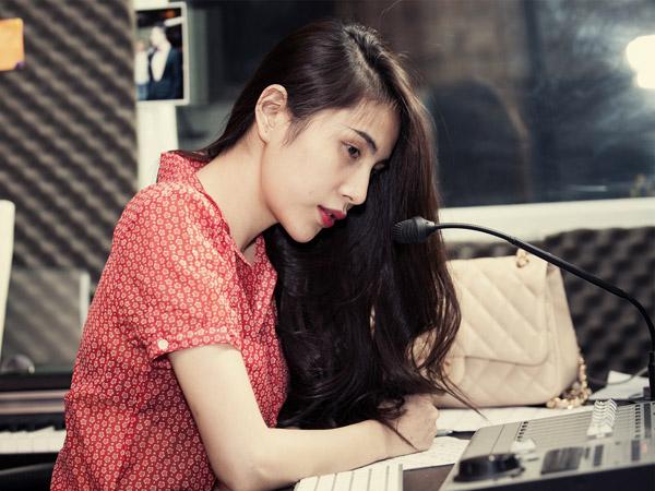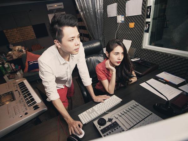 Mới đây, Thủy Tiên đến phòng thu để ghi âm ca khúc mới của Trịnh Thăng Bình.