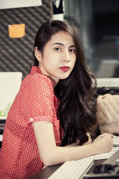 Nữ ca sĩ mặc trang phục giản dị, trông rất trẻ trung.